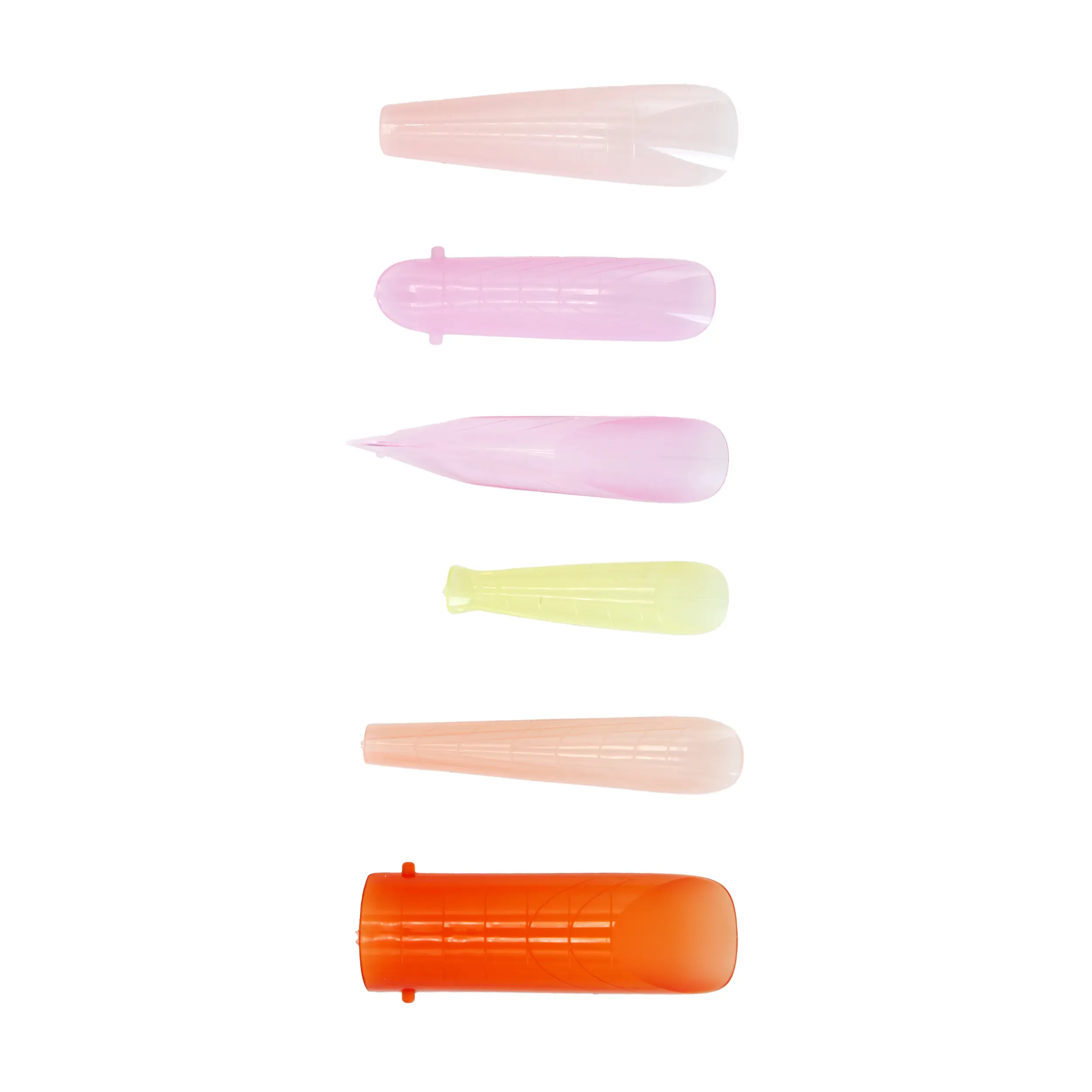 قالبها خطوط راهنمای دقیق دارند که به تنظیم اپکس، c-curve، راستای ناخن و هماهنگی فرم کمک میکند. همین دقت باعث میشود کاشت نهایی طبیعی، مقاوم و یکدست باشد.