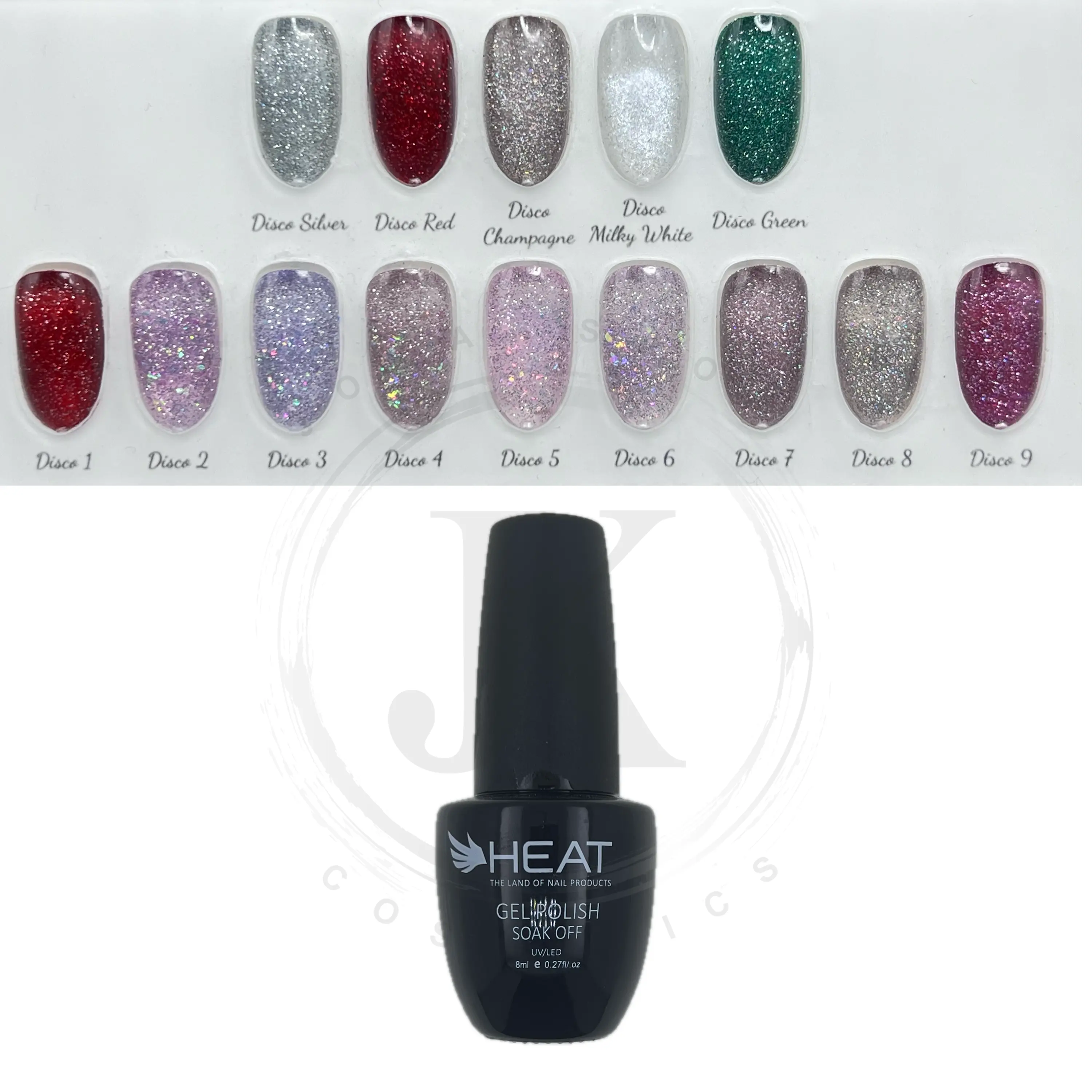 🩶 لاک ژل دیسکو هیت HEAT سری جدید ۸ میل درخشش خیرهکننده لاک ژل دیسکو هیت با جلوههای براق و پر زرقوبرق، ناخنهای شما را به استایل شبهای مهمانی و جشن تبدیل میکند. با فرمول ماندگار و پوشش یکنواخت، این لاک ژل در ۸ میل، انتخابی ایدهآل برای طراحیهای خاص و حرفهای ناخن است.