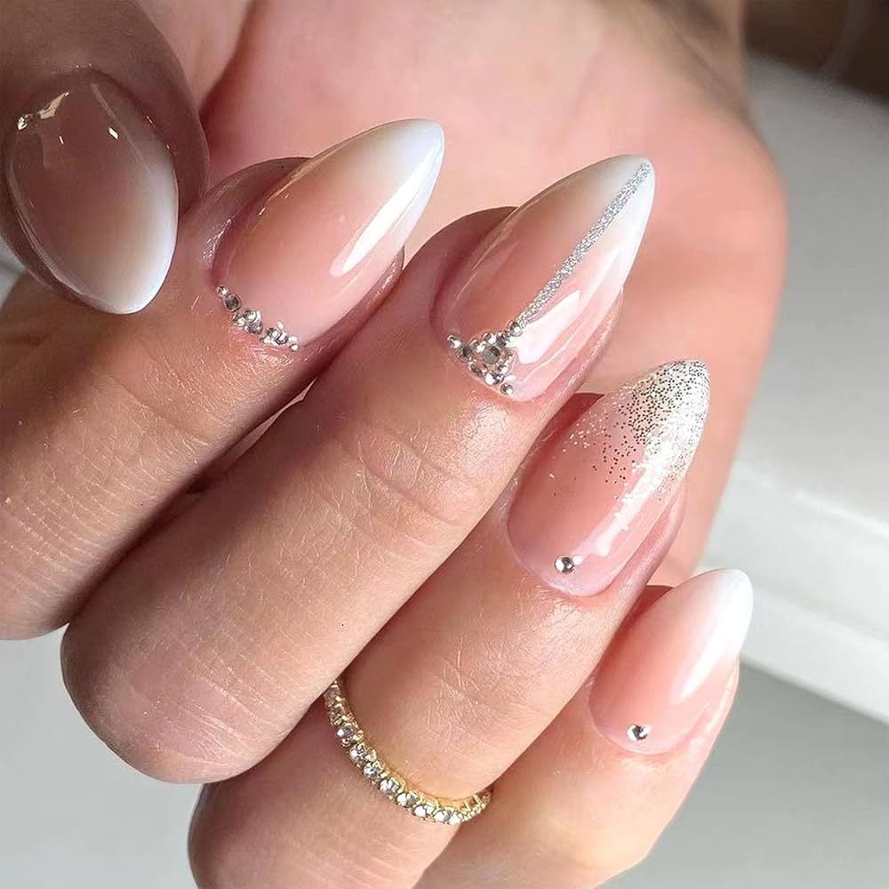 ۳. طراحی ناخن فانتزی با نگینهای کوچک