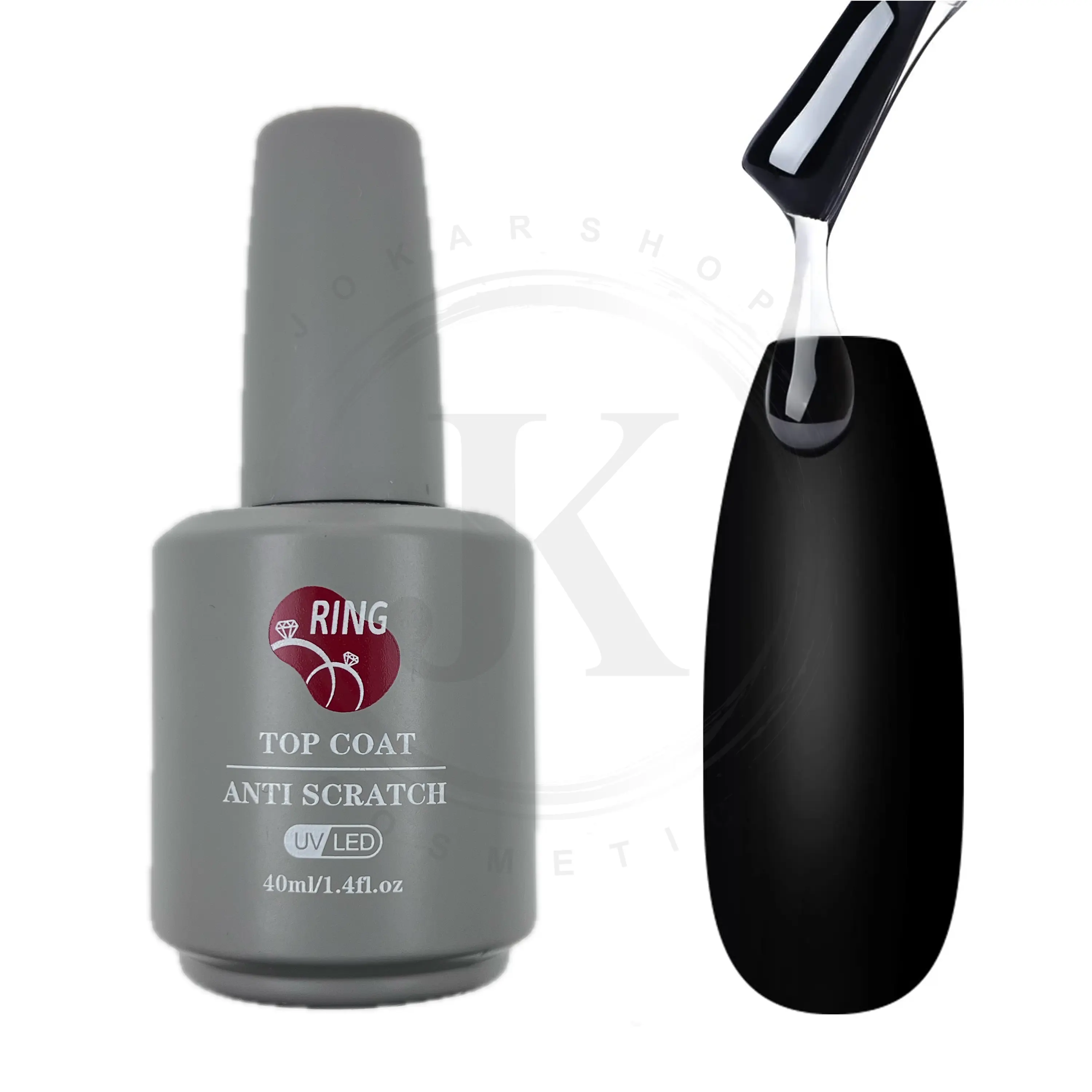 تاپ شاین ناخن رینگ RING حجم ۴۰ میل، پوشش براق و مقاوم. که در پایان کار کاشت یا طراحی ناخن استفاده میشود تا سطح ناخن را براق، صاف و محافظتشده نگه دارد. این تاپ شاین با فرمول ضد زردی و ضد خط و خش ساخته شده و در برابر لبپریدگی یا کدر شدن بسیار مقاوم است.غلظت مناسب و براش نرم آن باعث میشود پخش ژل روی ناخن کاملاً یکنواخت باشد و بعد از خشک شدن در دستگاه LED یا UV، جلوهای شیشهای و درخشان روی ناخن ایجاد کند.